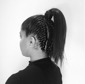 Turn the classic cheerleader-style ponytail on its head by adding tight, sleek braids to the underneath sections of your hair. While this may seem complicated at first, it’s actually pretty easy. Start by flipping your hair forward and grabbing the left section of your hair. With that individual section, begin to tightly French braid it until you get to the crown of your hair. Pin that section aside and repeat the braiding process on the middle and right sections at the nape of your neck. Once you have all three sections braided, secure the remaining hair into a high ponytail.