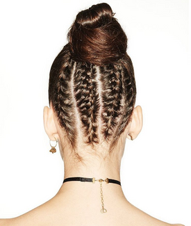 Remember that braiding technique mentioned above for the ‘Braided High Ponytail?’ Well, this edgy hairstyle requires the same technique with a little twist at the end. Once your three sections have been braided, you simply twist the remaining sections of your hair into a topknot instead of creating a ponytail. This style is perfect for more intense exercise routines as your hair won’t be sliding around throughout your workout.